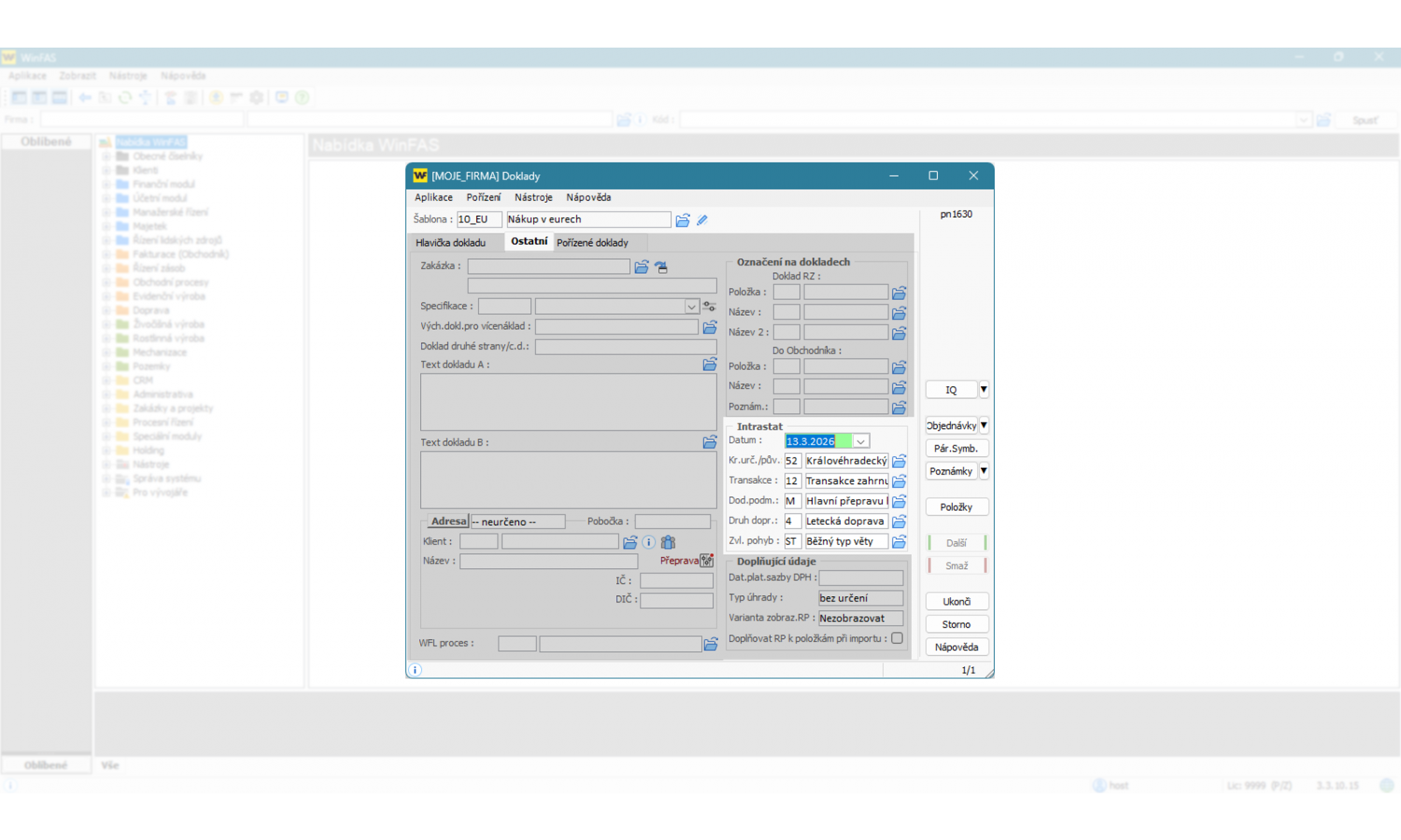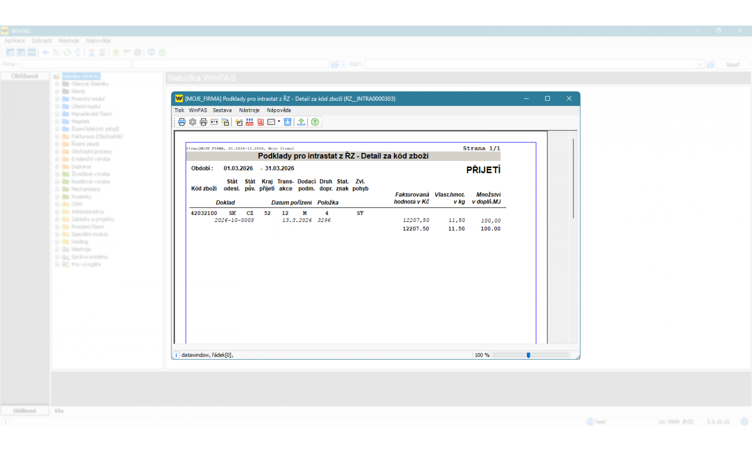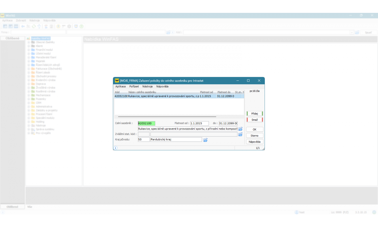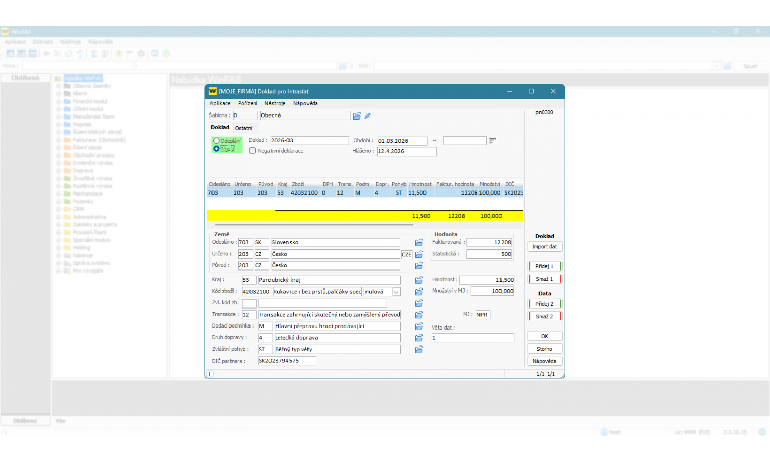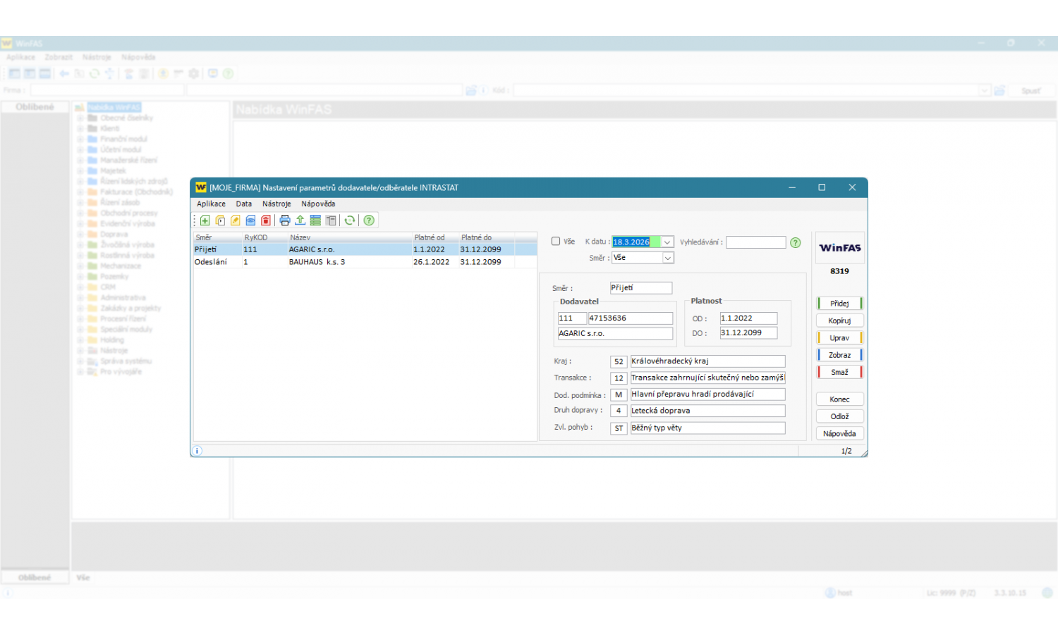 - užití číselníků pro Intrastat aktualizovaných z celní správy přímo ve WinFAS